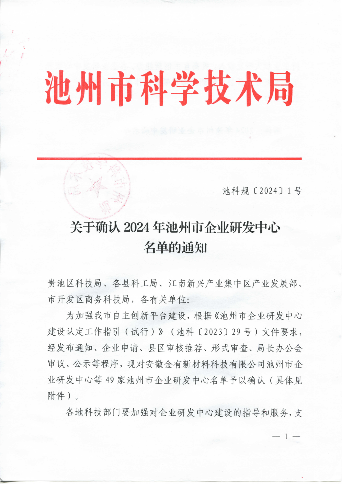 近日,根據(jù)《池州市企業(yè)研發(fā)中心建設(shè)認定工作指引(試行)》(池科〔2023〕29號)文件要求,經(jīng)發(fā)布通知、企業(yè)申請、縣區(qū)審核推薦、形式審查、局長辦公會審議、公示等程序,安徽中科安和順利獲得池州市企業(yè)研發(fā)中心稱號。